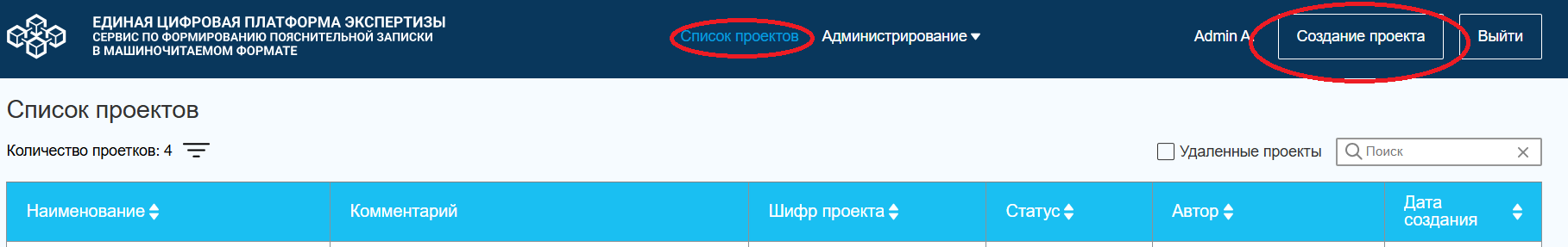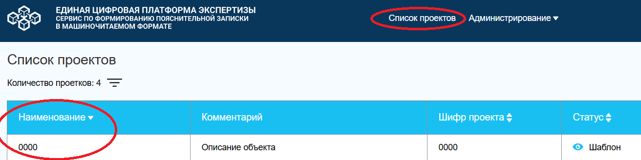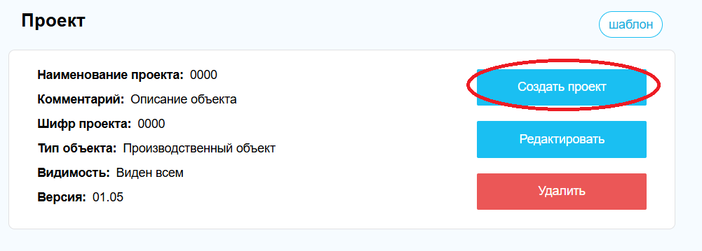 Заходим в Список проектов и выбираем Шаблон с наименованием 0000
