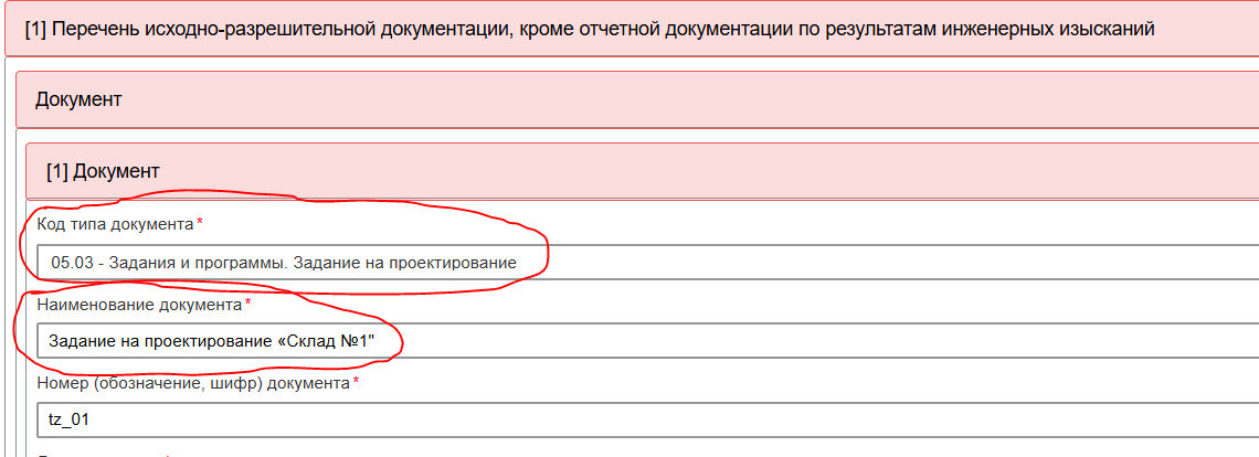 При добавлении Задания на проектирование необходимо заполнить все обязательные поля документа: