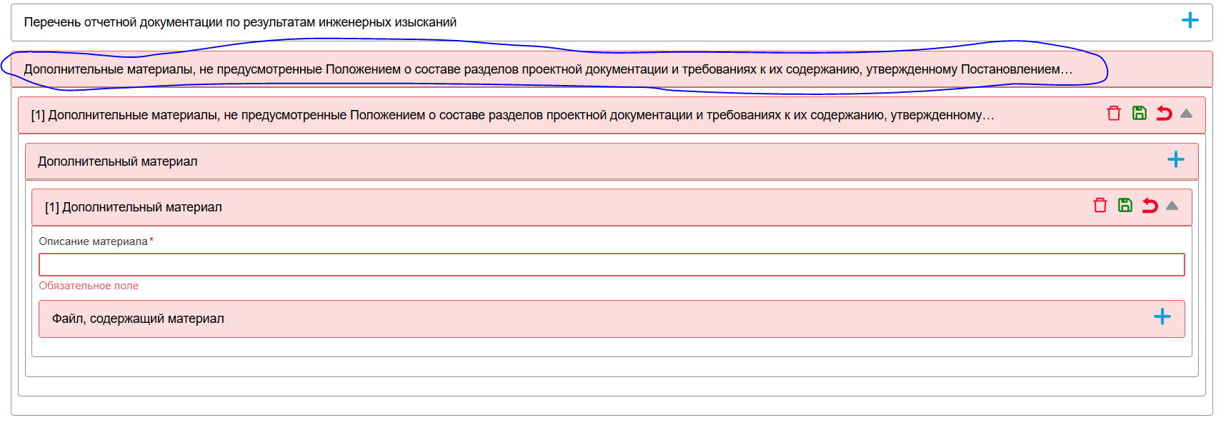 Если появилась необходимость в добавлении дополнительных документов в раздел ИРД, нужно добавить новый документ нажав на плюсик +